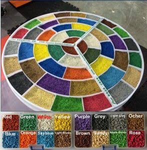 Colour SBR flooring is cost effective product. SBR Rubber buffing Base layer are made with tyre recycled crumb which is mixed with polyurethane Binder used 15% in Base. This base layer is for cushion purpose only and Top layer is colour coted granules which is made with “styrene-butadiene rubber (SBR)” with colour pigment. Granule standard size in 1-4 mm. EPDM granule have high weather and heat resistance properties. which is mixed with polyurethane Binder used 20% in top layer