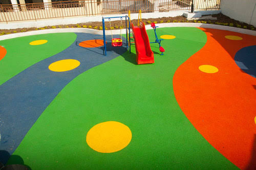 The children’s play area consists of the Wet Pour flooring system where the top layer is made using EPDM and the base layer is formed using bound SBR granules to produce the absorbing qualities of wet pour. Children need areas to play as an important right of any child is to have the right to play and experiment and thereby learn. Almost all high quality schools, and development projects are providing children playground areas now a days as customers are demanding these types of facilities.